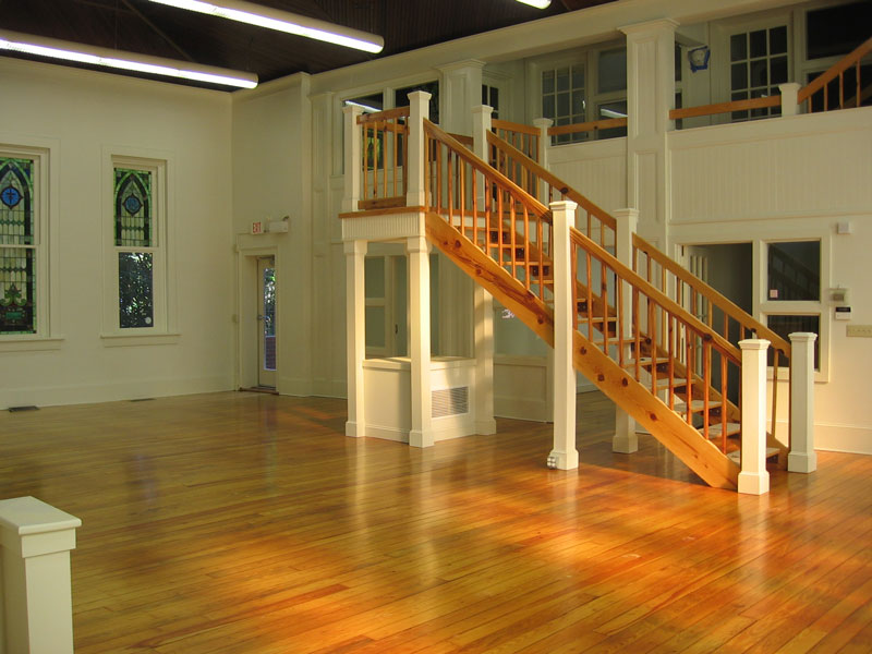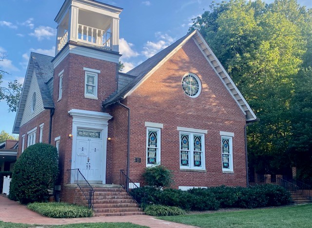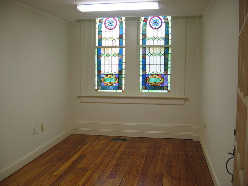 - Formerly United Church of Chapel Hill sanctuary, brick with original stained glass windows and hardwood floors, brick courtyard