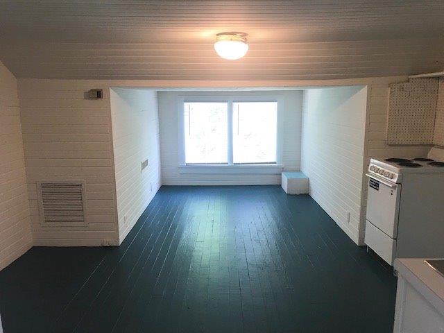 Attic apartment with stove and refrigerator, lower than normal ceiling in part of the apartment. Walking distance to UNC campus and downtown Chapel Hill.