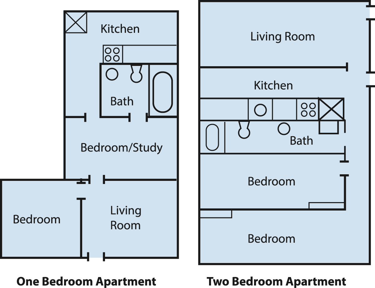 Approximate Square Feet: 1 BR: 600; 2 BR: 900